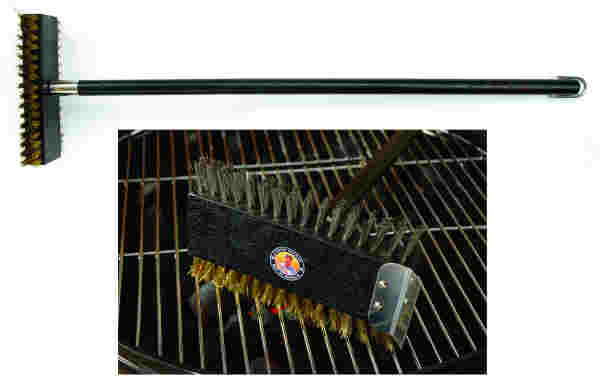 The Ultimate Grill Cleaning Brush has an 8" removable head made of both brass and stainless steel bristles that will not rust. At an overall length of nearly 30", the Ultimate Grill Brush gives you great leverage and keeps you safely away from the fire.