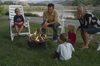 Enjoy the comfort of this 'forest friendly' portable gas campfire. Whether you're out on the road in the RV, car camping with the family or just enjoying a night out on the patio - this portable gas firepit is sure to keep you warm. Comes with base & high pressure burner, 12 pounds of lava rock, and a carry bag. Gather around the campfire without worrying about smoke or having wood. Great for all types of activities. Tank sold separately. Features & Benefits: + 60,000 BTU propane burner + Includes 12 lb. Bag of Lava Rock + Built-in Hi Output Burner + Convenient and Portable + For Outdoor Use Only + Includes Carry Bag + Includes 2 collapsible roasting sticks + Diameter is 15" Please allow 3-4 days for us to package and ship these items. |