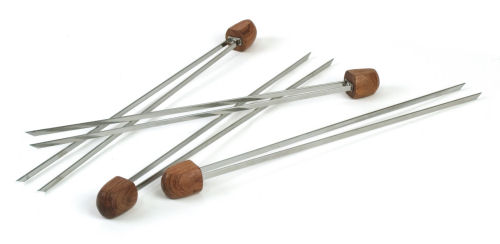 Our Rosewood Handle Double Prong Skewers are perfect for cooking outdoor kabobs. The unique double prong keep the food where it is supposed to be, on the skewer and not spinning around each time you turn the skewers over. They come as a set of 4 with beautiful rosewood ends. Just be sure not to place the rosewood over the fire!