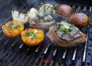 | GrillGrates are modular interlocking panels that create a new cooking surface on any grill. Three key elements make the GrillGrates grilling system simply a better way to grill - every time. Grill Grate, Eat Well. Includes: Two 5.25"x13.75" GrillGrates 1 GrateTool Instruction Guide Creates a 10.5"x13.75" cooking surface. Hard Anodized The raised rail design delivers steakhouse searing every time while preventing charring flare-ups. The bottom of the GrillGrates blocks most flame and flare-ups from the food while allowing the unwanted fat to be removed via the elliptical fat-draining holes. The good juices sizzle just below the food not in the bottom of your grill. Juices and flavor are seared in. GrillGrates allow you to cook a much wider range of food than ever before on the grill - without foil. Grill vegetables, fish, pizza, fruit, and lean meats such as boneless, skinless chicken and turkey burgers. The Hard Anodized sufrace can be wire brushed (and cleans easily) and handles heat up to 1200F. The GrateTool makes turning, handling and serving food easier. The GrateTool is designed to perfectly reach below the raised rails to turn and lift delicate fish, clusters of vegetables, and lean meats. The GrateTool also works as a scooper for asparagus, etc. |