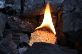 •Light edge and allow to burn 30 seconds before placing fuel on top
