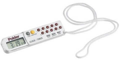 The handy 10-hour digital timer from Polder counts up as well as down and functions as 24-hour clock or stopwatch that tracks up to 23:59:59. It's likely easier to use and easier to hear than the timer on your kitchen appliances. It has a large easy to read digital display and you can use it freestanding, hanging from 36-inch strap or mount it to your refrigerator with the magnet on the back. You can time up to 10 hours and count up to 24 hours. The reset button is great for baking batches of cookies. You hear a staccato of beeps when the alarm sounds. A button cell battery included. Dimensions: 4.5 x 0.5 x 1 inches