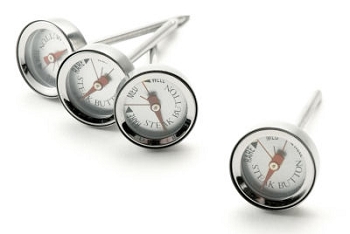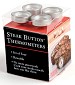 Are you the type who says "Keep it simple!"? Well, this product was made just for you! STEAK BUTTONŽ Meat Thermometers are designed to register when the food is done and not undercooked or maybe even more importantly overcooked. No more will you have to rely upon guesswork to try to determine when the food is done. The only real way to achieve consistency in cooking, whether it is indoors or outdoors, is to know what temperature the meat has reached. The STEAK BUTTONŽ Meat Thermometer measures Rare, Medium and Well Done. We told you it was simple. Simply insert the probe into the meat, check the temperature and remove the meat when it is done to your perfection. Get those nice juicy steaks each and every time! Boxed set of 4 STEAK BUTTONŽ Meat Thermometers |