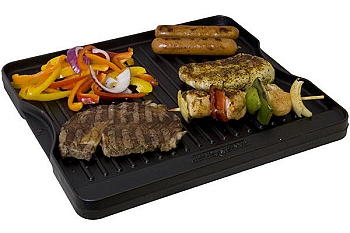 The cast iron BBQ Grill & Griddle is a useful innovation that allows any chef to maximize space, time and effort by offering two reliable products in one. Healthy cast iron is recommended by professional chefs for its ability to retain warmth and evenly heat. This massive 14 x 16 inch unit fits conveniently over one burner, features detachable handles for use with either surface and is portable enough to take anywhere. Create gourmet meals with ease on your Camp Chef cooker. Comes complete with carry bag.