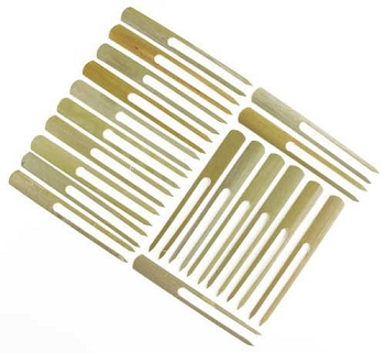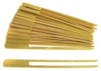 Steven Raichlen's unique double prong bamboo skewers were inspired by Japanese yakitori parlors to keep cubes of meat, seafood and vegetables from spinning around so you can grill your kebabs on both sides without slippage. These 6 1/2 inch double skewers come in a set of 20.