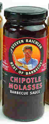 Steven Raichlen's Chipotle Molasses Barbecue Sauce is a suave smoky barbecue sauce spiked with sambucca and stung with chipotle chilies. The bottle size is 16 ounces.