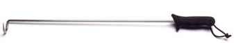 The Barbecue Steak Hook is for both commercial and backyard use! This great hookis made in the USA and are perfect for use at home as well as in commercial or industrial environments. Whether you're a cook at home or a chef in a restaurant, with these hooks you can securely handle meat on the bbq or grill! Once the hook has been set and twisted into one end of a piece of meat, the steak (or chicken, or fish, or whatever) can be lifted and flipped in one smooth motion. This 17 inch hook is perfect for thick steaks, small roasts, ducks and other pieces of meat requiring firm control. Comes with a convenient leather strap for hanging by the grill!