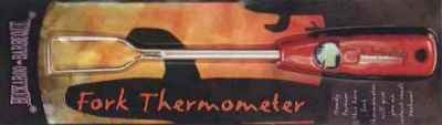 The Buckaroo Fork Thermometer places the most advanced temperature reading technology available today right in your hand. The instant-read thermometer is so accurate that even thin meats can be cooked to the desired doneness. You'll enjoy using the Buckaroo Fork Thermometer when cooking steaks, hamburgers, ribs, fish, pork chops, chicken, duck, veal, or any other type of meat or poultry. A critical factor in controlling bacteria is cooking meat to proper temperature. Many food borne bacteria multiple rapidly in low heat but are killed by high heat. Unfortunately, you can't be sure meat is thoroughly cooked at the appropriate high temperature just by sight or feel. Only a thermometer can read true temperatures. The Buckaroo Fork Thermometer has stainless steel tines, a digital display and an instant readout for accurate cooking.