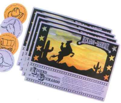 Our Buckaroo Placemat and Coasters are great for backyard parties or inside evening dinners. Regardless be sure to sit a spell and enjoy the evening and the food! The set consists of reusable, washable plastic placemats with coasters, four place settings per set.