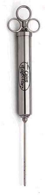 The Cajun Injector Commercial Injectors were developed by folks [them Cajuns] who really know how to flavor their food both inside and out! Each of these stainless steel injectors are made from the highest quality metal to offer long life. The manufacturers have developed a unique method to induce their wonder flavoring and spices inside the food they cooked while at the same time helping to keep their meat from drying out. Now that process has been adopted by the backyard barbecue chef. Both injectors feature clog resistant, prick proof chrome plated copper needles that are dishwasher safe and each can be loaded by suction or from the top! Simply inject liquid seasonings into the meat and flavors the inside of the meat as you would the outside. Fill the injector by inserting the needle into blended liquid seasoning mix and gradually pull up on the plunger or filling it from the top. Insert the steel needle into the meat and press on the plunger while removing the needles from the meat. Pull the needle out slightly, and reinserting it in a different direction will allow placement of seasoning in different parts of the meat. This injector is designed for blended liquid seasoning on turkey, chicken, brisket, roast, ham, etc. These injectors will stand up the toughest duty. They won't crack or break under normal conditions and will hold up some serious abuse. These injectors are dishwasher safe and easy to manage. You can inject marinades, natural juices and basting mixtures.