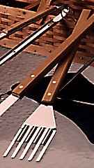 How many times have you tried to remove a hamburger, steak, chicken or other meat or vegetable only to find yourself tearing up the meat because it has either stuck to the grill or perhaps you have just scraped the bottom layer off. Well here is your answer. This "slotted" spatula has tongs that fit between the rods of the grill's rack. You then lift and gently separate the meat and vegetable from the grill's surface. Clean and neat! Reinforced stainless steel, premium brass rivets, genuine leather hanging loops and select hardwood handles.