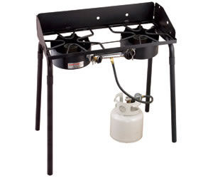 This beefed up Outdoorsman stove will make all your large capacity cooking a breeze and best of all it keeps the heat outside. If you can fruits and vegetables or boil for large groups you have found the stove you need. Designed for large capacity cooking. Two 60.000 BTU/hr T-max burners work to produce 120.000 BTU/hr of pure outdoor cooking power. Features drum-style burner housing and rugged cloverleaf cooking surface pattern. Excellent for seafood boils. home canning. maple boils and more! (If you are going to be cooking alot of breakfasts and/or barbeques we recommend you check out the EX-60LW)