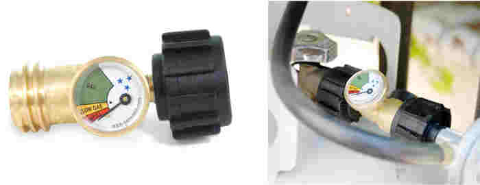 Simply place this fitting between the tank and the line to your grill and you're set! Don't be left out in the cold and don't waste trips to the bottler. Great for the RV folks and Camper Stove connections. Solid Brass Fitting is 3-1/2" long and works with butane tanks as well. This gas gauge will work on any size tank that uses the same connection type.