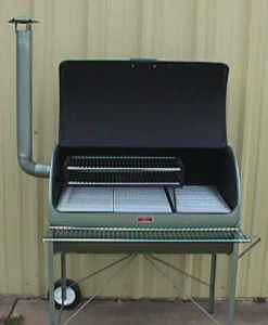 First, a brief history. This pit was first produced in the late 1940's and later sold commercially in the early 1950's. Each unit was individually handcrafted of heavy 16-gauge steel with zinc-electroplated carbon steel grills, included was a detachable shelf for holding utensils and supplies. The pit was finished in light green hammer-finished baked enamel. New and improved! A half century later, Mr. Hathorn's quality design and individual hand craftsmanship still continues to be built into each pit. A unique feature, not found on similarly styled pits, is the 16-gauge internal removable steel fire box with cast iron grate. Each pit also includes a drip can, to catch all the drippings. Most importantly, the Hathorn Pit still utilizes the indirect heat design, and when used as directed, MEAT CAN'T BURN!