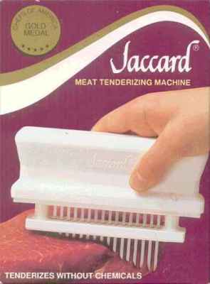 This unit will pay for itself many times over. Besides, it is easy to use with just one hand and leaves no marks on the meat! The degree of tenderness is regulated simply by the number of times the tenderizer penetrates the meat. "IT'S JACCARDIZED"!