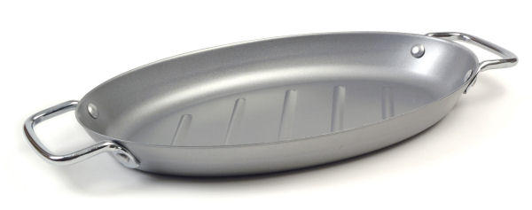Our Non-stick Oval Griddle with Handles is perfect for most everything you cook on the grill. The heavy aluminum keeps fish and other meats from burning and the fire from flaring up. The handles make for easy use and moving around.