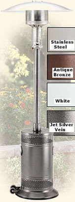Our outdoor heaters are designed to extend the use of your patio, deck or dining area well into the chilly fall months and will allow the use of your outdoor entertainment and dining areas virtually year-round. They use a standard five-gallon propane cylinder (not included) with approved over-fill protection device.