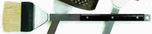 Use this oversized, all natural bristle brush with sleek bakelite handle to apply your favorite basting mixtures, flavored butters, glazes and barbecue sauces while the food is on the grill. Brush head detaches for easy soaking and cleaning.