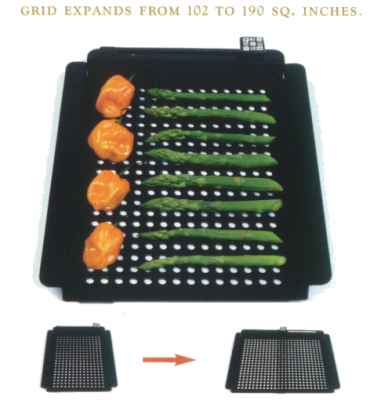 The Space Saver Grilling Grid is ideal for all sizes of grills. This unique product is adjustable from 102 to 190 square inches. The overall size is 12 x 10 inches (small) - 15 (large) inches. They will fit the standard bullet style smokers or the regular barrel or other cooker. These great items makes a breeze out of preparing grilled fish, seafood, vegetables or any other large or small meats that do not stick to the grate, will not fall through into the fire and are extremely easy to clean because they are dishwasher safe. The Space Saver Grilling Grid is made from heavy duty steel and is coated with a non-stick surface which protects the food from the old "rusted" grill and, one of it's best features is that it keeps the meat from sticking to the grill!. Simply place the grid on top of your regular grate and you're ready to go! The raised handles on each side make for easy handling.