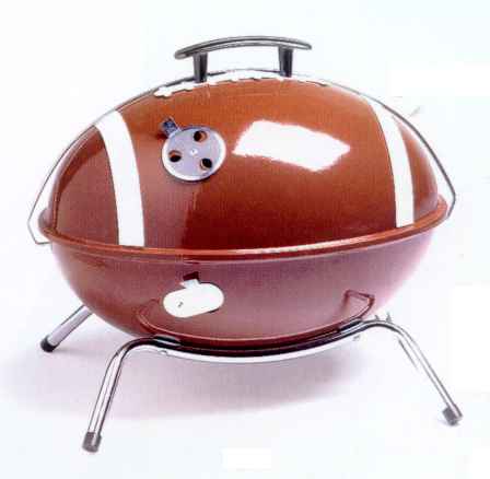 All right sports fans, here is your ticket to the next Great Grilling Event! This unique charcoal grill is great for backyard or tailgate parties. This unique design will bring out the cheering when the burgers come off the grill. The grate is 3mm in thickness and has a 12 x 17 inch grilling surface. It has top and bottom air vents to control the temperature as well as an easy to use Bakelite handle with steel locking ring. It even comes with a locking device made for easy traveling and weights less than 10 pounds. These are Hot Grills!