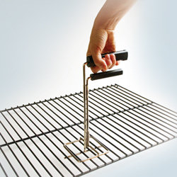 If you've ever struggled to lift the grid off a hot grill for refueling or smoking, this eminently cool tool is for you. The powerful spring mechanism lets you grab and lift a hot grid with one hand, leaving the other free to add fresh charcoal or wood chips. The sturdy construction and powerful spring mechanism is able to lift heavy stainless steel and cast iron grids with one hand. 10.5" wooden handle keeps your hand away from the heat!