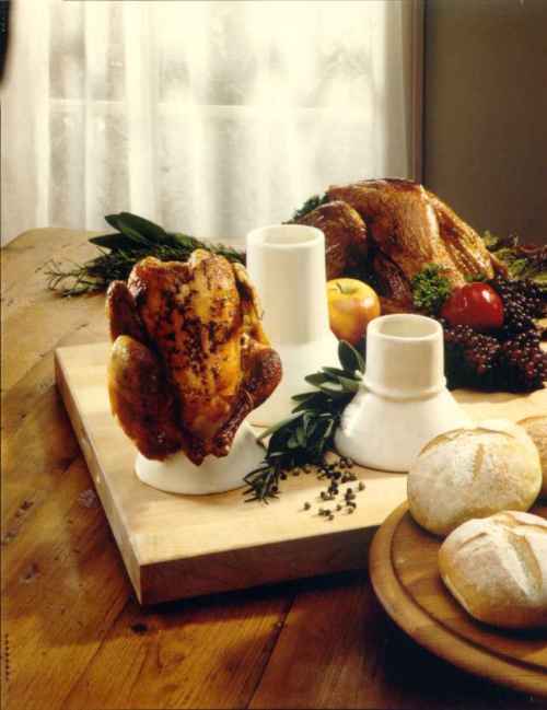 For many, many years, 'ol Willie used a simple beer can filled with recipes of beer, wine, sherry, herbs and spices to flavorfully smoke-cook his chickens from the inside out. The heat from the smoker/enclosed grill would cause the liquid and spices to begin to boil. This steam would then penetrate the entirety of the chicken - smoke flavor from the outside with steamed herbs and spices on the inside would mix and make a wonderful meal. Occasionally, one of those suckers would turn over and he would have to take time and refill it. One day, a friend mentioned his health concerns of using the aluminum can and Willie says to himself, "There's got to be a better way!" He then set out to determine the best darn way to smoke a chicken using his beer can flavoring system, take heed of government warnings and most importantly, THEY REMAIN UPRIGHT! Well, you know, he did it! And now this patented "cool tool" is available for your use.