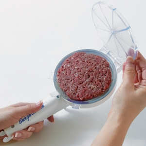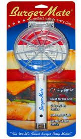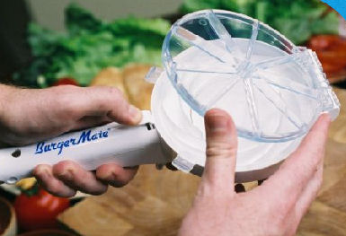 | BurgerMateŽ is a new way to form ground meat or veggie patties. The novel design eliminates contact with ground meat, creating great burger patties quickly and easily. Simply mix the ground meat in a bowl with all the desired ingredients and scoop the mixture into the BurgerMateŽ. Close the lid, squeeze the handle and your patty is formed, ready for the grill or frying pan. Creates 1/3 lb patties all with one uniform thickness, ensuring your burgers are properly cooked every time. The BurgermateŽ is constructed from premium FDA approved food-grade plastic, is dishwasher safe, and is easily disassembled for cleaning. Comes in white or black. Use with ground meat, veggies, tofu, tuna, etc... |