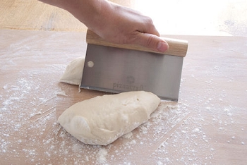 * Use dough cutter to manipulate and portion the dough