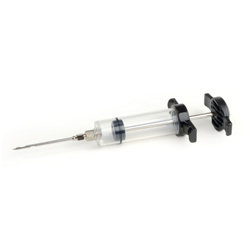 | Keeps even the driest meats moist during cooking and smoking and puts the flavor in the heart of the meatInsert it deep in pork shoulders, turkey breasts, etc., and gently push the plunger to inject the liquid flavoring. 2.5" stainless steel injector needle. |
