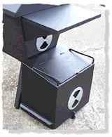 This is the real thing. Features: 3/16" steel construction, 1/2" cast iron fire grate, removable ash pan, grease pan, adjustable air control, door handle/poker, 16" log capacity, 30 lbs. charwood capacity, 6 hr. burn time, 130 lbs. Shipping weight.