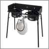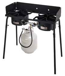 The Double-Burner Professional Stove, by CampChef, (Model #DL-60LW) is as rugged as the outdoors, and will cook up a great meal in no time. Designed for the true sportsman, the Universal Output Double Burner Cooker is a rugged stove with intrigue and attitude. It features two universal output 30,000 BTU/hr cast iron burners that are great for all types of outdoor cooking. Trademark cloverleaf cooking surface pattern reflects this outdoor appliance's strong performance capabilities. Preferred by hunters, campers and scout groups.