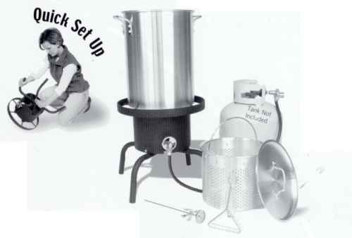 There is nothing better than a deep fried turkey. They are crisp, moist, delicious, and quick! Normally only taking 3 to 5 minutes per pound to cook up to a 15 lb. turkey. What you might not know is that deep fried turkeys cook so quickly, the turkey doesn't absorb the oil. Therefore, you don't get greasy, tasteless turkey and what you do get is moist and tender. Use the Turkey Cooker, by CampChef, to deep fry whole chickens, Cornish game hens, quail, pheasant, geese, fish, shrimp, wings, potato wedges, and more! The Turkey Cooker from is constructed of lightweight, durable aluminum. Our set includes a 26 Qt. Turkey Pot, Turkey Rack with Handle, Lid, and 12 in. Deep Fry Thermometer and a Single Burner Cooker. The Single Burner Cooker features one 75,000 BTU/hr T-Max burner for maximum output. Additionally it includes a needle valve temperature control at the regulator, and legs that conveniently reverse for compact storage. The all-steel Single Burner Cooker is incredibly is easy to transport for camping, hunting, fishing or just about anywhere.