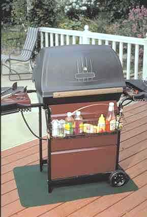 This unique gas grill mat is made from Zorb-Tech(tm), an anti-flow absorbance material which stops spills from migrating to the wood deck or concrete. The heavy duty double stitched edges and rounded corners make for durability and longevity. The non-woven fabric facing is soft, yet durable and very thirsty!