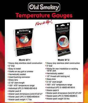 When barbecuing, you need to know you are cooking at the correct temperature. Don't risk serving undercooked or overcooked foods? Replace that worn-out, broken or inaccurate factory thermometer with the Old Smokey cooking chamber thermometers. Depending upon your grill, you may simply replace the original thermometer or if a fit is not easily accomplished, drill a hole in the center of the lid and mount this accurate thermometer.