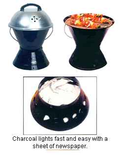 The Barbecue Bucket with aluminum lid is a compact, easily transportable charcoal grill constructed of heat and rust resistant porcelain enameled steel. The Bucket offers conveniences such as an easy carry handle and a removable vented base, which also serves as a charcoal starter and ash catcher. The charcoal lights fast with a sheet of newspaper; "no" charcoal lighter fluid is required. The best little bucket grill just got better by the recent addition of the aluminum vented lid. In addition, the unique design of the Barbecue Bucket allows for grilling at tailgating, picnics, and camping.