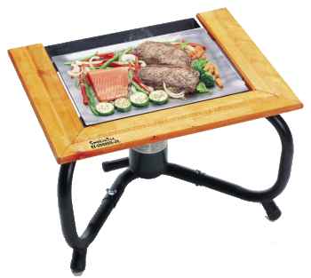 The EZ Cookers are buttressed by a hardwood frame and catch basin and use a standard 16.4-ounce propane cylinder. The gas container attaches to an adjustable high-pressure burner and, after lighting, heats up very, very quickly. This grill is perfect for all types of food -- chicken, steaks, burgers, hot dogs, fish, vegetables, pancakes, bacon, sausage or eggs. Nothing falls through into the fire!