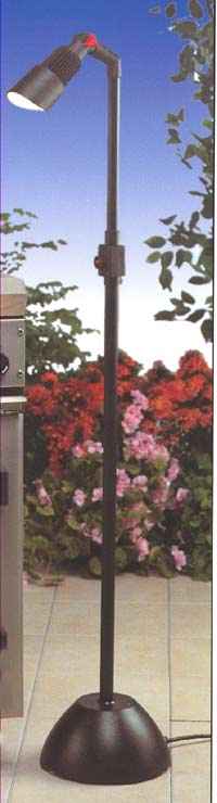 This award winning floor model halogen Light is designed for long lasting outdoor cooking. Never more will you be caught by the setting sun with your meat half done. Cook all night long with this heavy duty unit. Sits on the ground next to your grill for easy and convenient positioning and adjusted to the desired angle, this weatherproof light generously illuminates the grilling surface. Its' 35 watt Sylvania Halogen Bulb casts a clean, white light that renders colors accurately, enabling the chef to properly judge doneness. It's also excellent for use as an outdoor reading lamp; for accent lighting or as a work light. Puts light where you need it . . . . . safely outdoors. As used by Barbecue'n On The Internet!