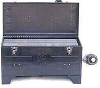 Tool Box Grill - The Better Way to Barbecue. Open Use, Vent-Free barbecue is clean, easy to use, easy to store and easily transportable. Unique size and shape makes it perfect for tailgate parties, picnics, camping, and beaches. Easily fits in car trunks, trucks and RV’s. Exterior functions like a Tool Box yet interior is a Superior Barbecue Grill. Heat and Burn Resistant Phenolic Handle- Convenient to carry handle that will not melt. Makes for easy mobility. Barbecue will cook while handle stays cool. Lift Tab- Easily lift and close lid without burns. Made of Heat Resistant Phenolic. Heat Shield- Added Safety! Reduces heat transfer from bottom of Tool Box Grill so the meat cooks to perfection on inside, but doesn’t cook the surface that the Barbecue rests on. Cooking Grill- Heavy Duty Grill communicates quality and durability (made from thick 4 Gauge, Nickel-Plated, Wire Rod). 152 square inches of spacious cooking surface. Heavy duty, Nickel plated. Vent Free Operation. 2 Heavy-Duty Latches- Keeps lid securely closed during transport. Permanently Attached Legs- Sturdy legs are permanently attached for safe, tip resistant cooking, making the Tool Box Grill the best for outdoor safe cooking. High-Temp Paint- Retains the quality Tool Box Grill look. Lid- Quickly extinguishes coals, and controls flare-ups. Tool Box Grill cools down rapidly when closed providing added safety. Warranty- 5 years on grill box excluding finish, 1 year on plated wire cooking grill and plated coal basket from date of purchase.